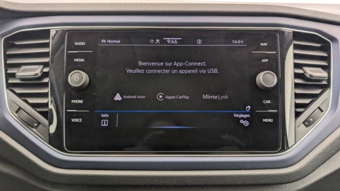 - "App-Connect" affichage et contrôle via l’écran tactile du véhicule, du contenu, des fonctions et des applications compatibles présents sur le Smartphone (compatibilité avec les systèmes Apple CarPlay et Android Auto). Fonction sans fil uniquement disponible avec Apple CarPlay. Seuls les contenus validés et utilisables en «main libre» peuvent fonctionner