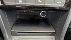 - Accoudoir central AV réglable avec compartiment de rangement, porte-gobelet intégré, et prise 12 V pour les passagers AR